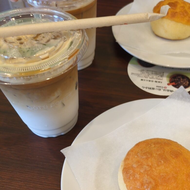 今回はココナッツミルクラテMサイズ(甘さあり)+チャーシューメロンパン税込み900円。